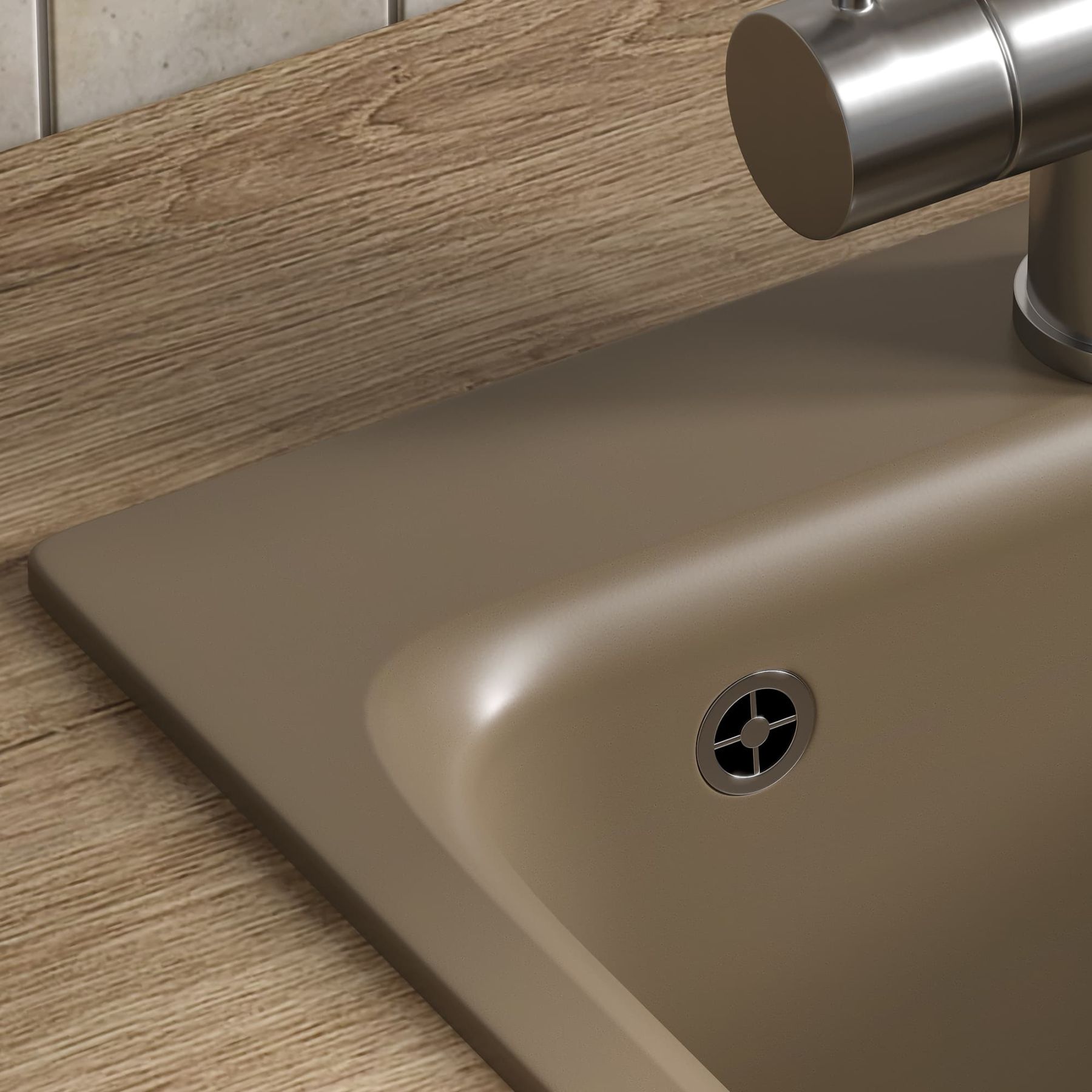 В мойке предусмотрено отверстие для установки смесителя. Используя алмазную коронку, можно сделать дополнительные отверстия для дозатора жидкого мыла или сифона с полуавтоматом.