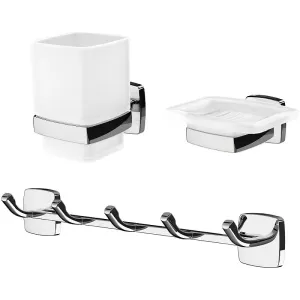 Набор аксессуаров для ванной AM.PM Gem AK90B1603W хромПредставляем вашему вниманию набор аксессуаров для ванной AM.PM Gem AK90B1603W. Этот комплект идеально подойдет для создания современного стиля в вашей ванной комнате. Изделия выполнены из цинка и стекла, что гарантирует их долговечность и прочность. Настенный монтаж обеспечивает удобство использования и экономию пространства.