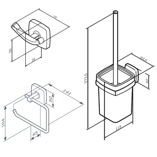 Набор аксессуаров для ванной AM.PM Gem AK90T2003B черныйНабор дизайнерских аксессуаров от AM.PM станет идеальным завершением образа современной туалетной комнаты. Занимая минимум места в пространстве, аксессуары Gem помогут рационально организовать место для хранения и станут стильными акцентами в интерьере. В комплекте: двойной крючок для полотенец, держатель для туалетной бумаги, стойка с туалетной щеткой. Дерзкая и стильная коллекция Gem в черном цвете превращает даже простые аксессуары для ванной комнаты в классные дизайнерские детали, которыми хочется пользоваться каждый день. Форма аксессуаров повторяет линии смесителей коллекции, подчеркивая единую концепцию дизайна. Премиальные детали: массивное матовое стекло прямоугольной формы. Лазерная обработка стыков – ультратонкий шов и 100% защита от влаги.