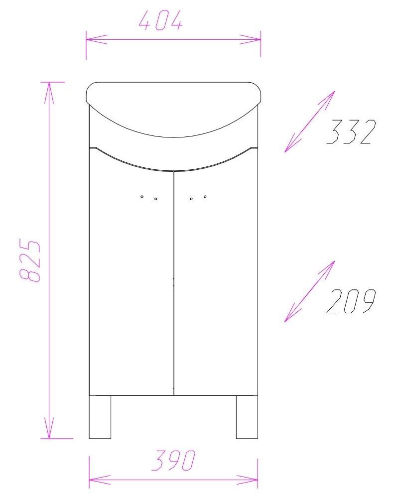 Размеры тумбы без учета раковины и ножек: 39*21*68 см.
