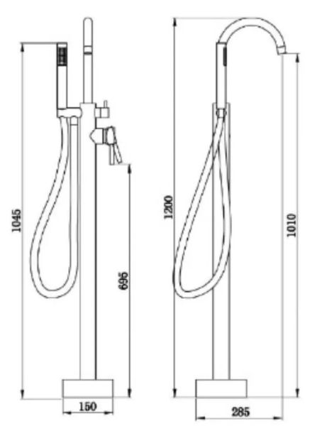 Смеситель BRAIES напольный для отдельностоящей ванны BOCH MANN BM7772 Картридж SCCДушевая штанга: нержавеющая стальДушевой шланг 1,5м