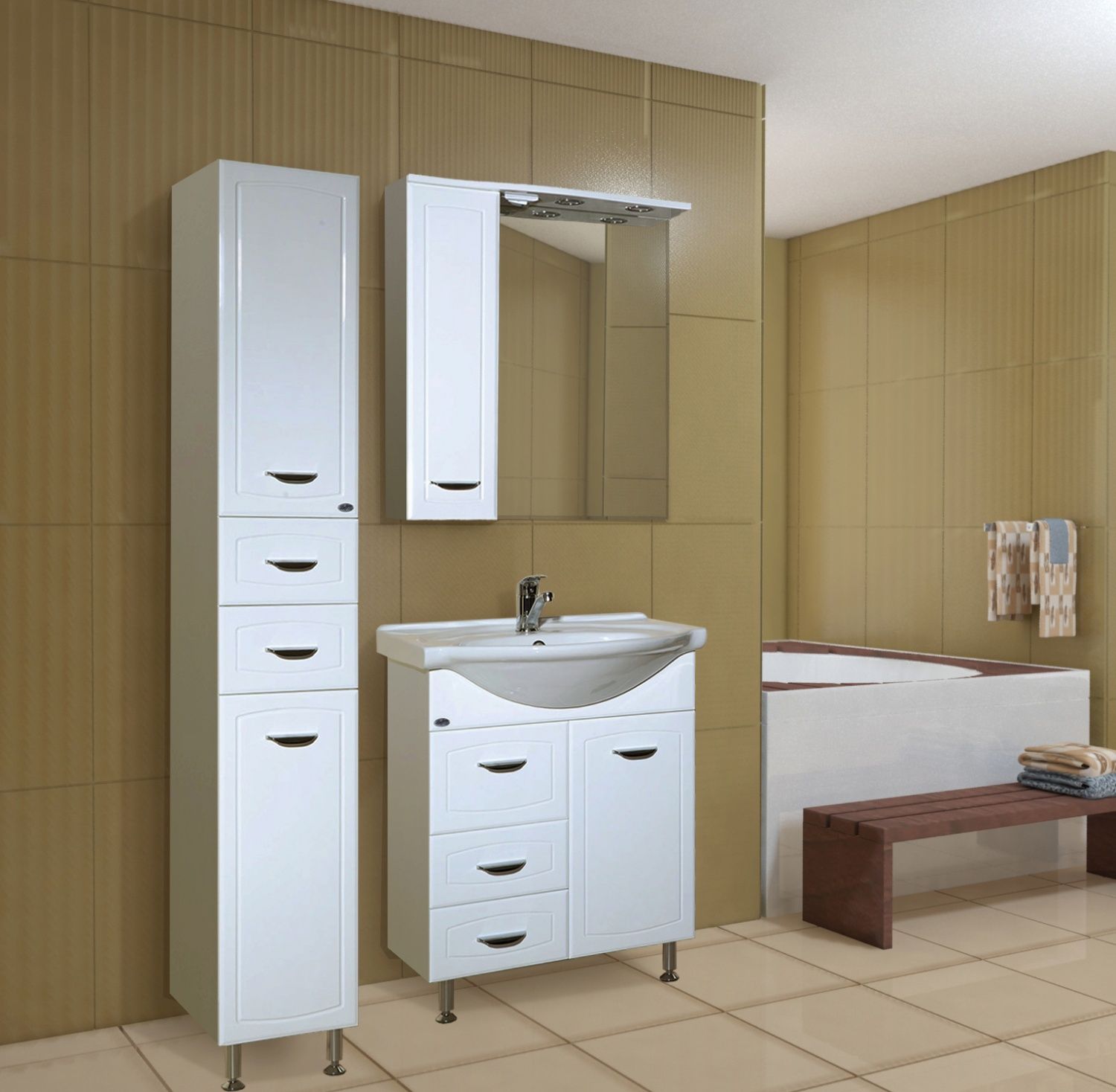 Шкаф-пенал Bellezza не только функциональный предмет интерьера ванной комнаты, но и несравненное эргономичное дополнение дизайна, как небольшого, так и крупного помещения.Компания Bellezza использует при производстве высококачественные водоотталкивающие материалы (МДФ, ВЛДСП), соответствующие всем необходимым требованиям безопасности. Коллекция выполнена в эксклюзивном дизайнерском решении в лучших традициях современного стиля. Белый, основной цвет исполнения Bellezza, отлично подходящий большинству дизайнерских решений. Шкаф-пенал предусматривает удобную и вместительную систему хранения, состоящую из дверей, ящиков.Россия родина бренда Bellezza, вся продукция производится со строгим соблюдением всех стандартов, благодаря чему можно быть абсолютно уверенным в надежности и высоком качестве. Шкаф-пенал Bellezza это абсолютный комфорт в современной ванной комнате.