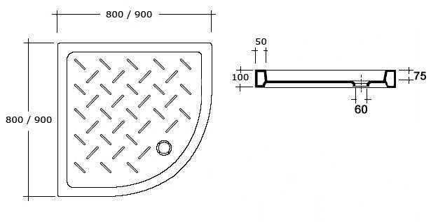 Полукруглый керамический поддон RGW CR/R-088 800х800х100