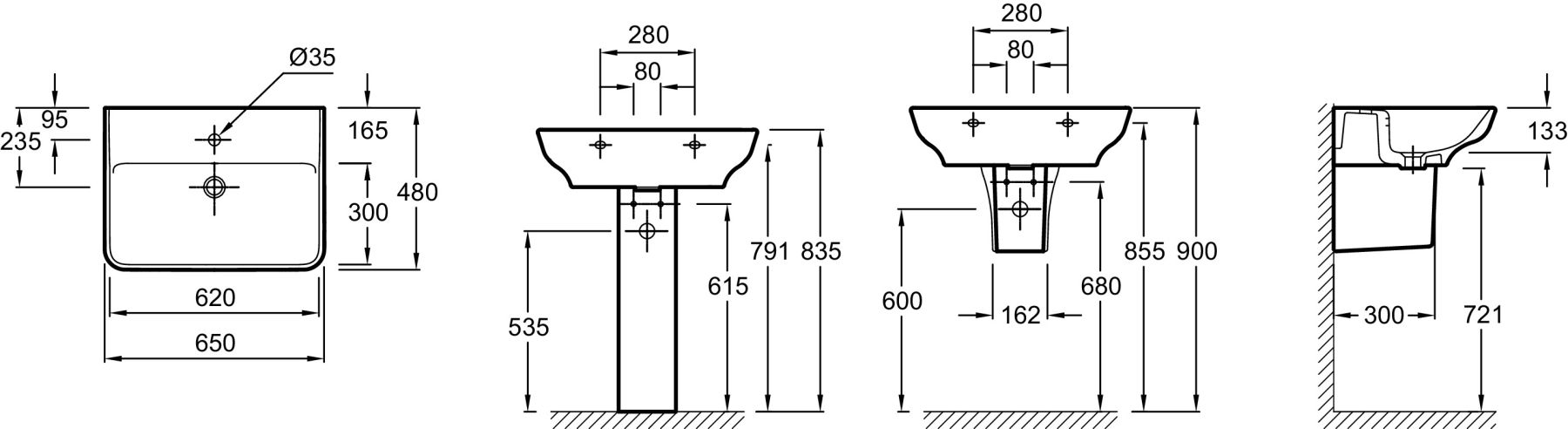 РАЗМЕТКА СВЕРЛЕНИЯ ОТВЕРСТИЯ ДЛЯ СМЕСИТЕЛЯ: 1 отверстие для смесителя