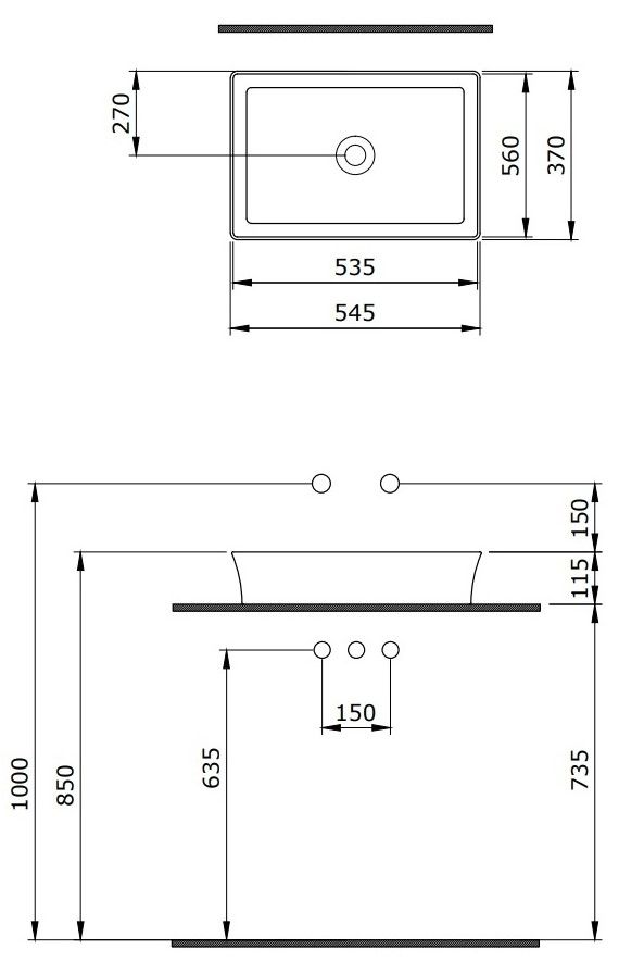 • Отверстия под смеситель: