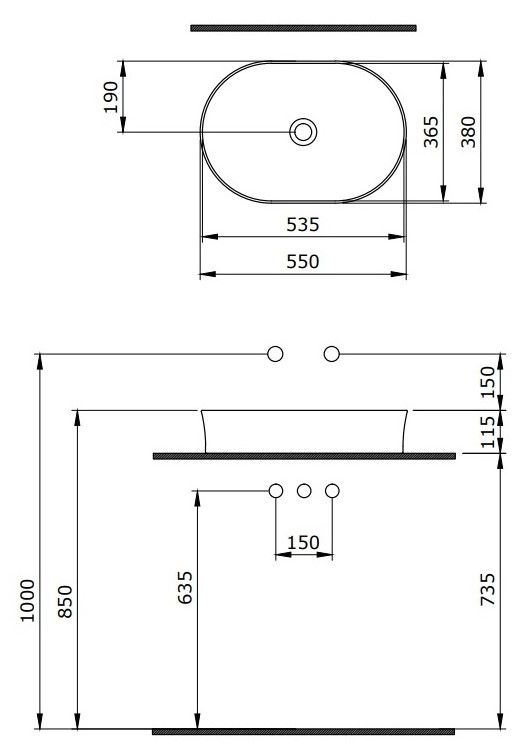 • Отверстия под смеситель: