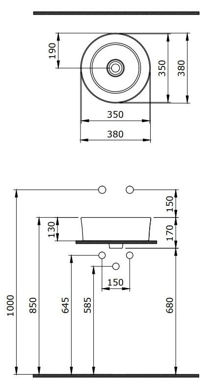 Накладная раковина из санфарфора Berges Mascon диаметром 38 см.Высота 12,5 см.Круглой формы, без отверстия под смеситель, глянцевая белая.Керамическая крышка слива в комплекте.