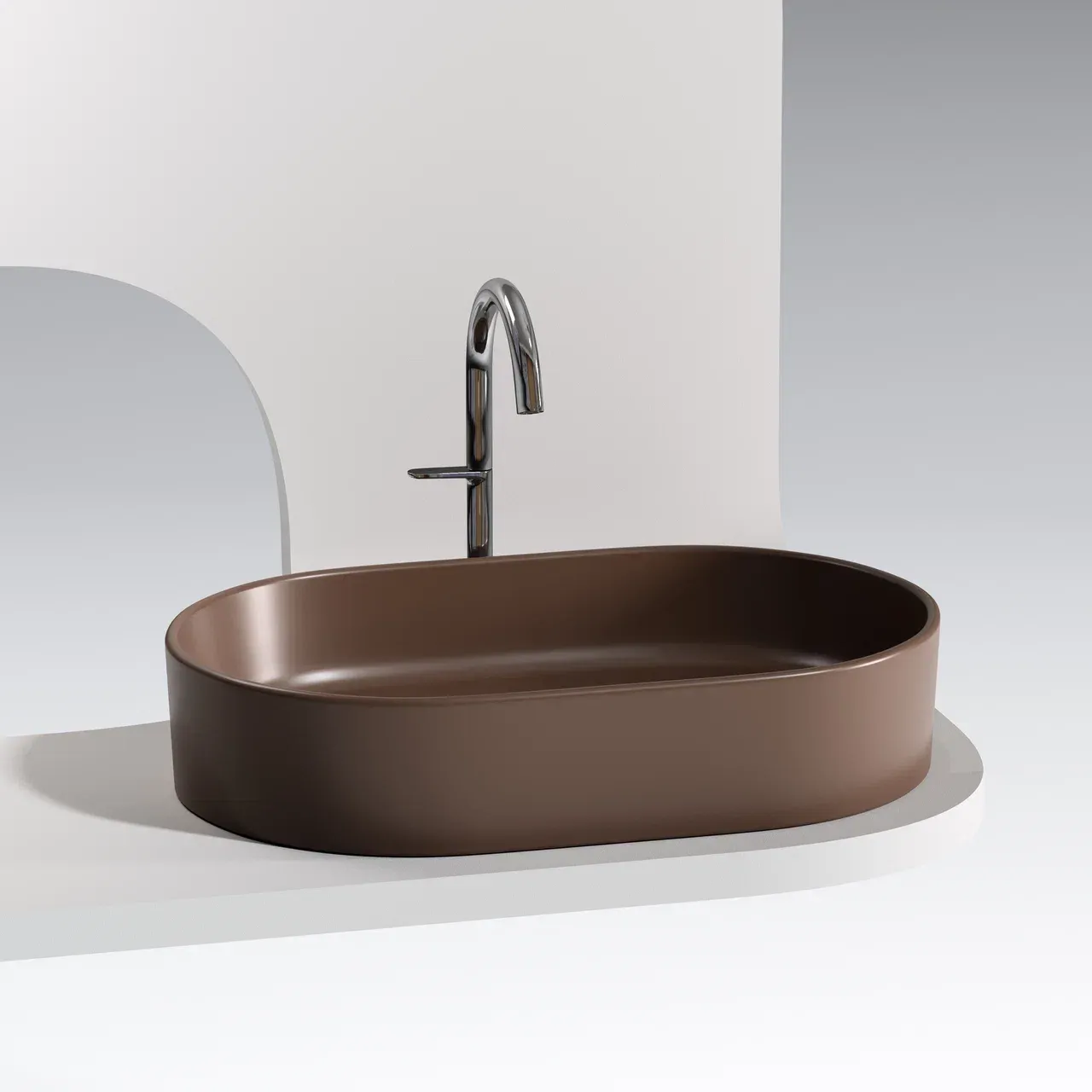 Умывальник чаша накладная овальная (цвет Темно-Коричневый Матовый) Element 608*385*122мм