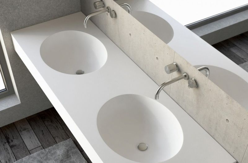 Раковина из искусственного камня для ванной комнаты овальной формы. Некогда абсолютный бестселлер среди вклеиваемых моделей Montebianco, и сейчас удерживающий верхние строчки продаж. Модель бесшовно вклеивается в столешницу любого цвета, создавая цельную поверхность, смотрится как единое изделие. Эта особенность расширяет границы использования Pietro Due: вариации цветового решения столешницы, ее размера и формы позволяют реализовать любую дизайнерскую задумку. Дно чаши не плоское, вода по стенкам беспрепятственно стекает в сливное отверстие до последней капли – вода не застаивается после использования раковины. Уход за раковиной из искусственного камня прост: в большинстве случаев достаточно протереть поверхность влажной губкой с чистящим средством. Материал не впитывает влагу, не порист, непроницаем для плесени, бактерий и грибков.