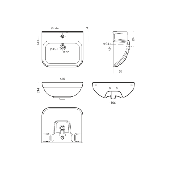 • Отверстия под смеситель: