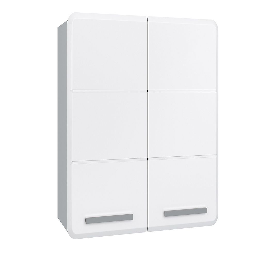 Шкаф навесной с двумя распашными дверками, за которыми две встроенные полки. Петли со встроенным доводчиком, ручки - 2шт, навесы 2шт.