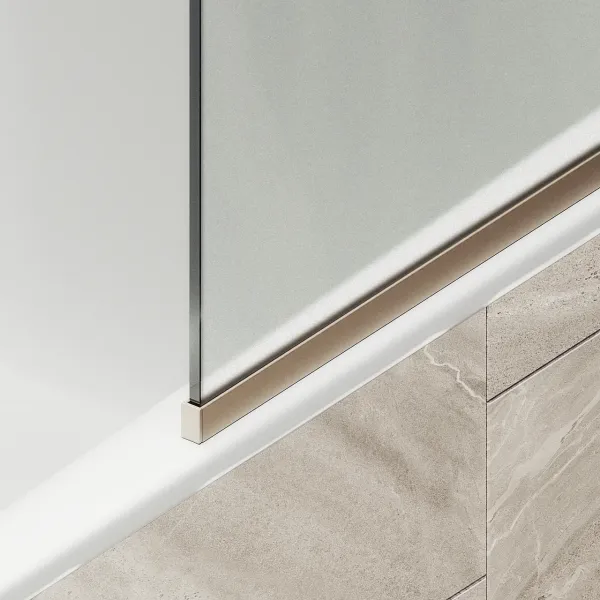Монтаж осуществляется с помощью алюминиевого профиля, что обеспечивает надежность крепления и безопасность использования стеклянной перегородки для ванной. Также, шторка оснащена специальным уплотнителем, который предотвращает попадание воды на пол ванной комнаты. Закаленное стекло, цвет Сатин, толщина 6 мм 1400х340 мм - 1 шт.