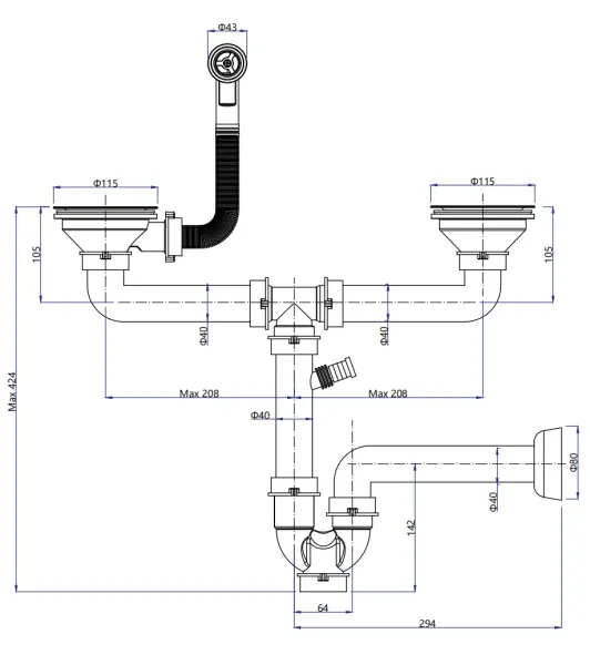 "Сливная арматура для одночашевой мойки.