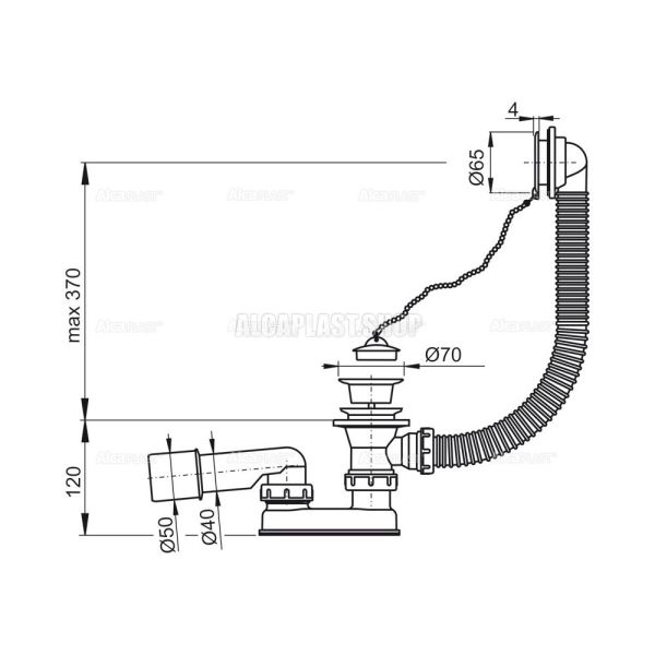 Слив-перелив для ванны AlcaPlast белый 57см A502