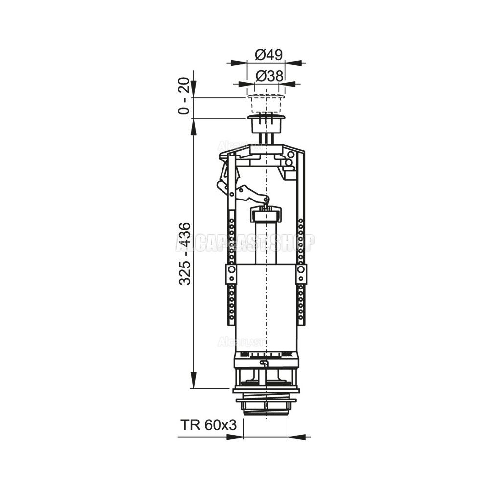 • Конструкция позволяет регулировать высоту механизма в зависимости от высоты бачка