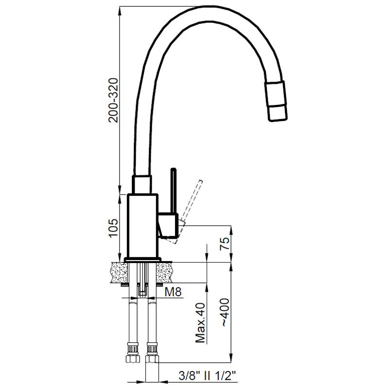 • Высота смесителя: