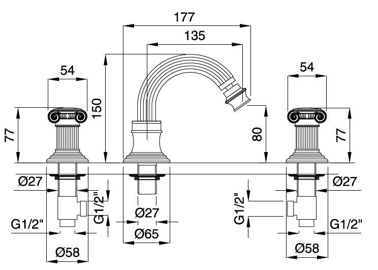 Смеситель для биде на 3 отверстия Cezares OLIMP-BBS2-02-M