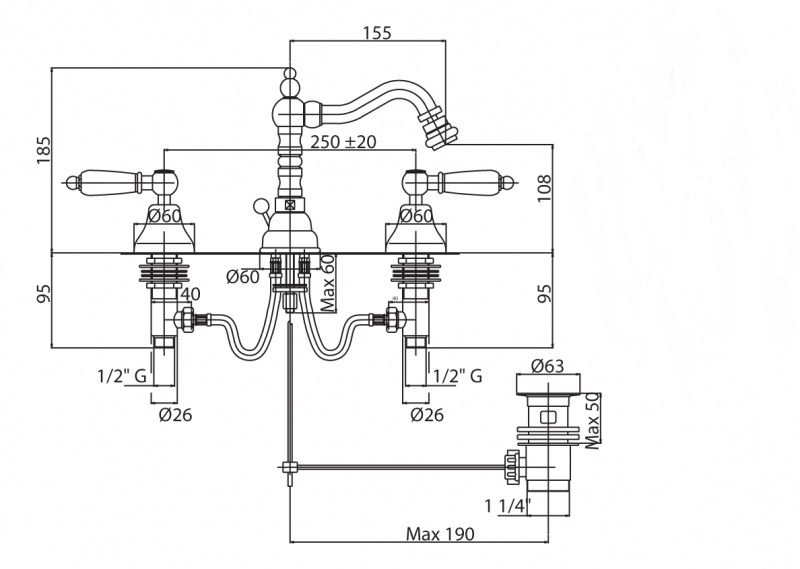 Оснащение: донный клапан, аэратор