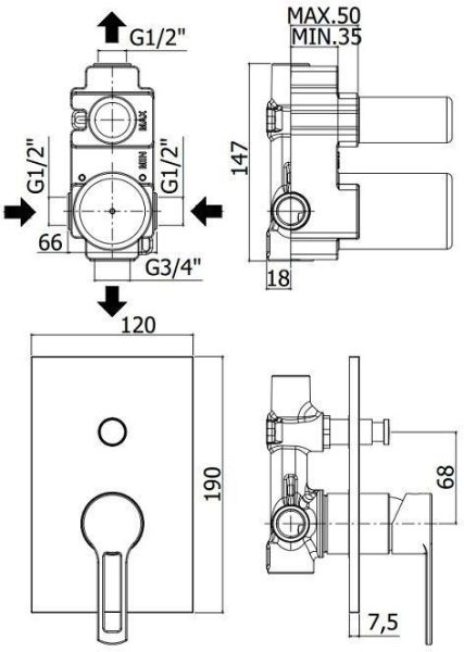 Смеситель встраиваемый для душа на 2 выхода с накладкой нерж сталь 120х190мм.девиатор-кнопка, Белый матовыйСмеситель для душа Paffoni Ringo RIN015BO/M (с внутренней частью) предназначен для душа. Своим ярким дизайном и колористикой он внесет в интерьер помещения особое настроение, подчеркнув его своеобразие. Он выполнен из надежного материала латунь/Нержавеющая сталь, который не ржавеет, а потому прослужит без ремонтов. Модель является оптимальным примером достойного качества. Управление в смесителе предусмотрено однорычажное, что удобно для любителей такого типа смесителей. Высокую жизнеспособность и основательность смесителю гарантирует керамический картридж, главным преимуществом которого является беспроигрышная конструкция - залог безупречной работы в течение длительного времени. Не напрасно гарантия на смеситель – 5 лет, в течение которого компания Paffoni заверяет в его бесперебойной работе. Форма излива в смесителе - нет, а тип - нет. При покупке учтите, что подводка у смесителя жесткая, что требуется знать для его монтажа.