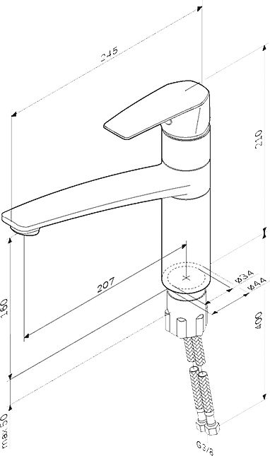 • Высота смесителя: