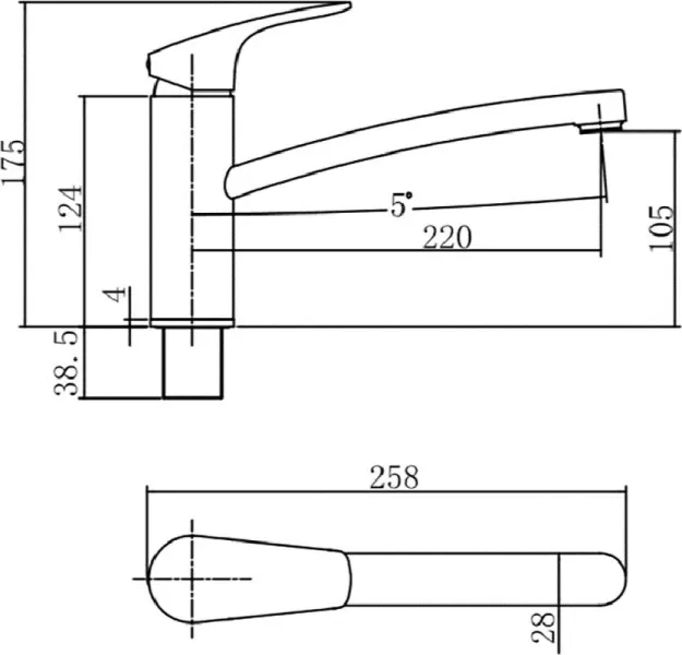 • Высота смесителя: