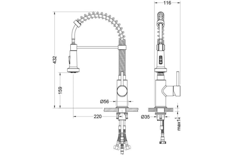 - Высота смесителя:43.2