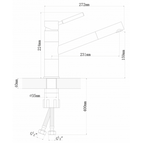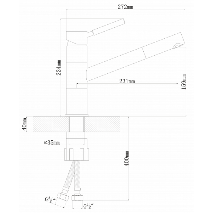 • Высота смесителя: