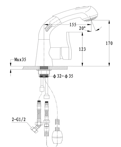 • Высота смесителя: