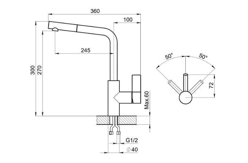 - Высота смесителя:30