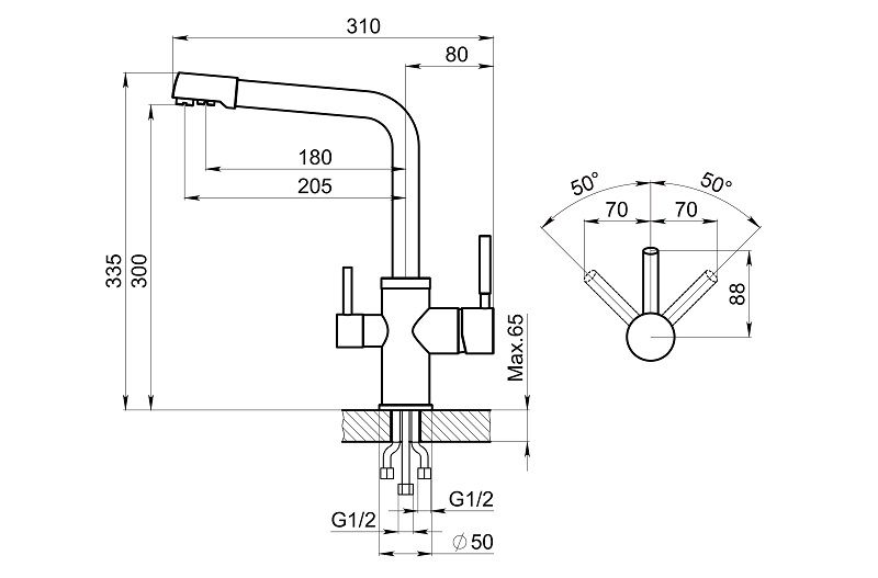 - Высота смесителя:33.5