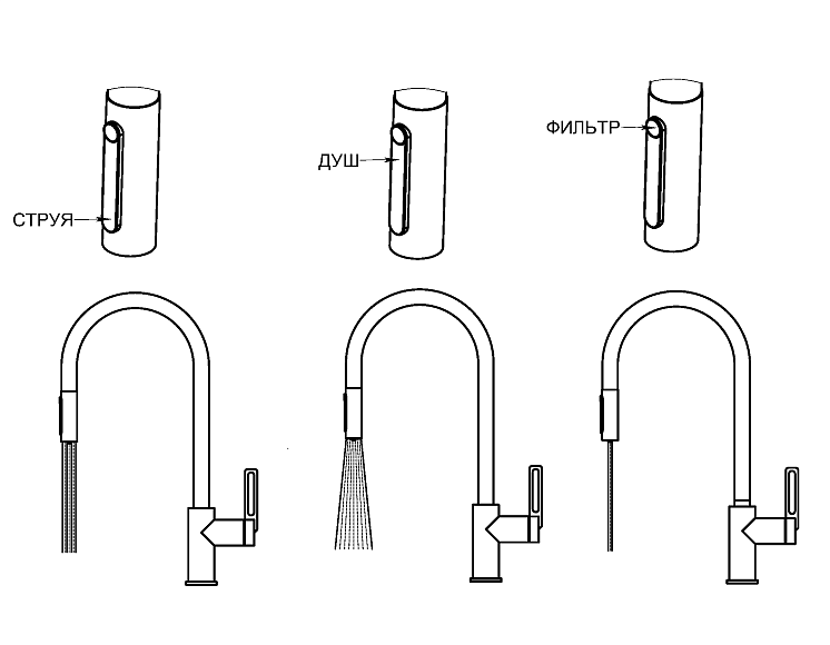 • Выдвижной излив:
