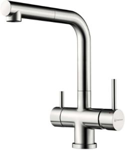 • Полный набор креплений, соединительных шлангов, подробная инструкция и гарантийный талон в комплекте.Смеситель Omoikiri Takamatsu S BN 4994346 для кухонной мойки восхитительно подойдет в вашу ванную комнату и дополнит интерьер. Смеситель Omoikiri Takamatsu несомненно подойдет почти на любую кухонную мойку. Возможность одновременной регулировки температуры воды и её напора в однорычажных смесителях, значительно экономит не только время, но и деньги.Латунь использованная в конструкции смесителя Omoikiri Takamatsu 4994346 соответствует всем необходимым стандартам качества и является абсолютно безвредной для здоровья. Излив смесителя Omoikiri 4994346 длиной 18.7 см и высотой 25.3 см обеспечит идеальное и комфортное использовании при принятии водных процедур. Излив Omoikiri Takamatsu так же оснащен функцией вращения, что значительно упростит использование смесителя. Конструкция модели Omoikiri Takamatsu позволяет роскошно установить смеситель на мойку. Смеситель для кухонной мойки Omoikiri 4994346 выполнен в современном стиле, что замечательно прослеживается в его форме. Наличие выдвижного излива у смесителя для кухонной мойки Omoikiri Takamatsu дополняет его функционал удобной особенностью. Совмещение в конструкции смесителя Omoikiri 4994346 функции подключения фильтра и обычного смешивания воды, избавит вас от необходимости установки дополнительного крана на питьевую воду. Родина бренда Omoikiri – Япония, все смесители произведены с высокой точностью и грамотностью технологического процесса. Смеситель Omoikiri Takamatsu S BN 4994346 для кухонной мойки это незаменимый элемент для создания уюта и комфорта в ванной.