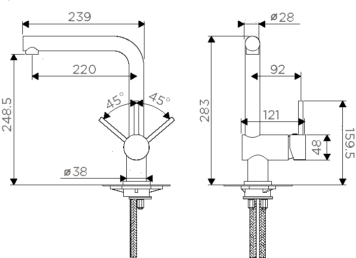 • Гибкий излив: