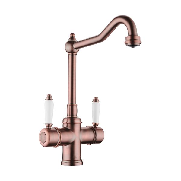 • Классический дизайн и удобство использования, благодаря высокому изливу; • Цвет: 015.Античная Медь;; • Технология PURE LIFE: Подключение фильтра для очистки воды. Фильтрованная вода подается по отдельной трубке и не смешивается с водопроводной водой; • Высококачественная латунь сохранит воду чистой и здоровой; • Аэратор произведен из пластика, благодаря чему на нем никогда не появится известкового налета и ржавчины; • Коробка внутри проложена поролоном, который обеспечит сохранность изделия при транспортировке; • Полный набор креплений, соединительных шлангов, подробная инструкция и гарантийный талон в комплекте.