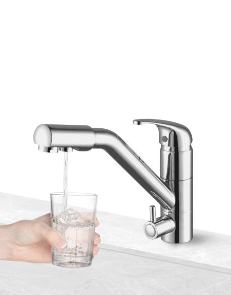 Смеситель под фильтр, артикул He213017-CRИзготовлен из высококачественной латуни, которая отвечает высочайшим европейским стандартам качества, не содержит свинца, не разрушается со временем и безопасна для здоровья.Tехнология Trinkwasser®. Фильтрация питьевой воды