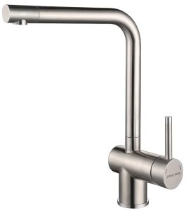 Смеситель для кухни, с высоким изливом, и поворотным аэратором, Sp212067-SS.Изготовлен из нержавеющей стали AISI 304. Нержавеющая сталь AISI 304 легирована никелем, марганцем, медью и хромом, что обеспечивает ей повышенную прочность и устойчивость в коррозионных средах, такая сталь подвержена деформациям.