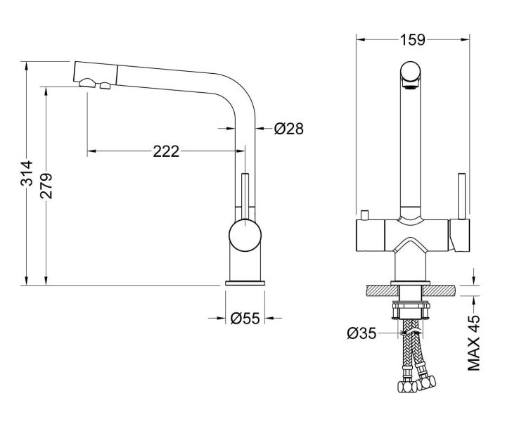 - Гибкий излив:нет
