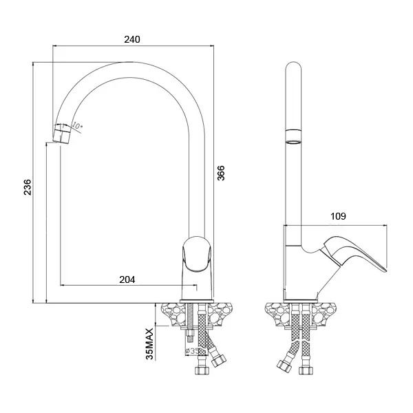- Высота смесителя:36.6