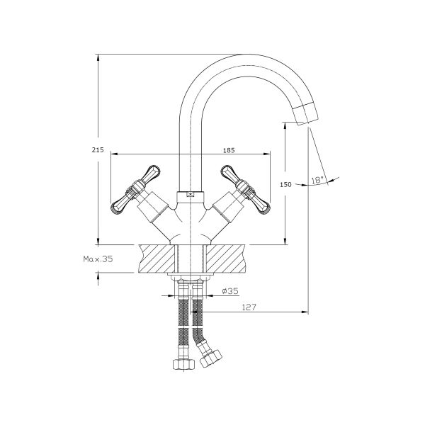 • Высота смесителя:
