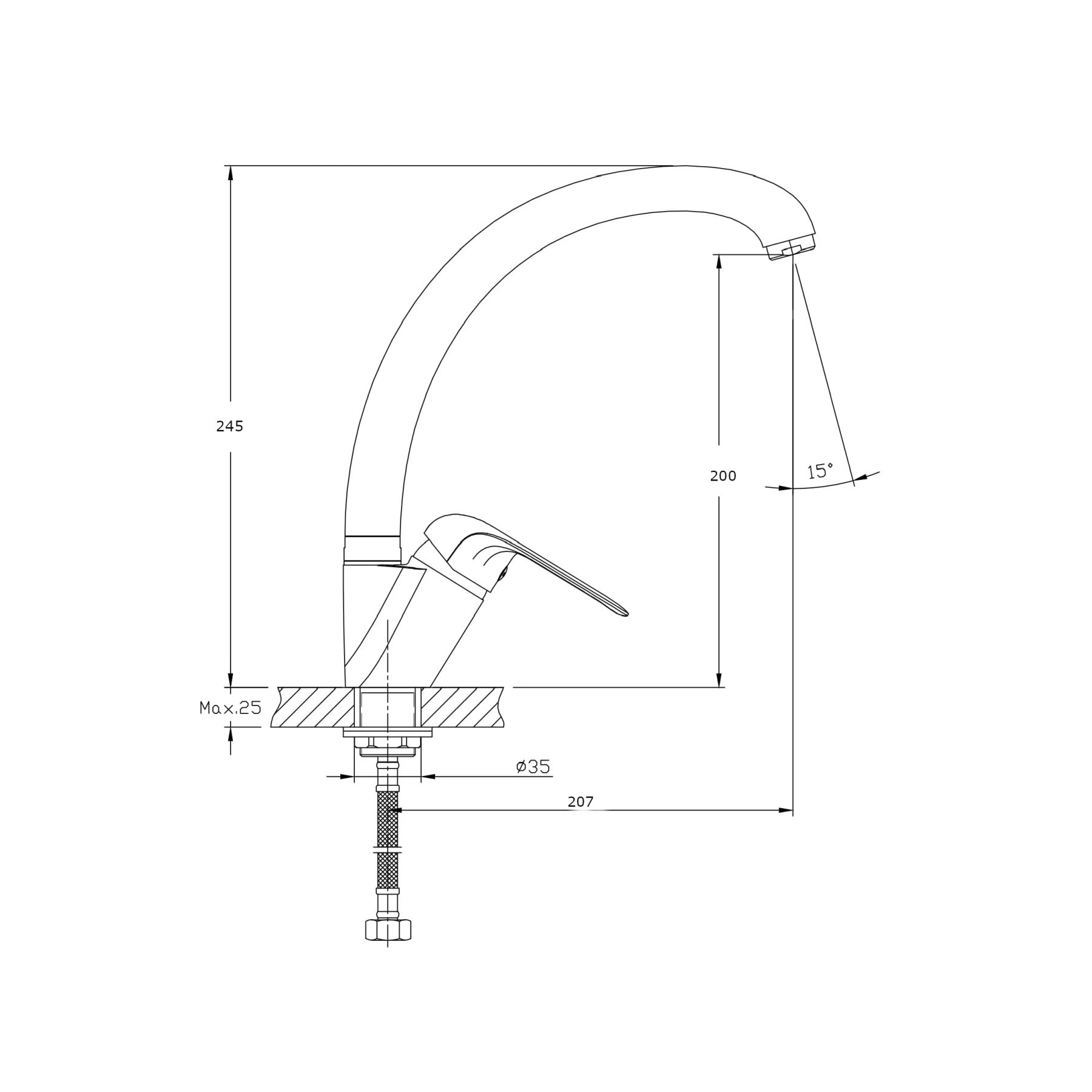 • Высота смесителя:
