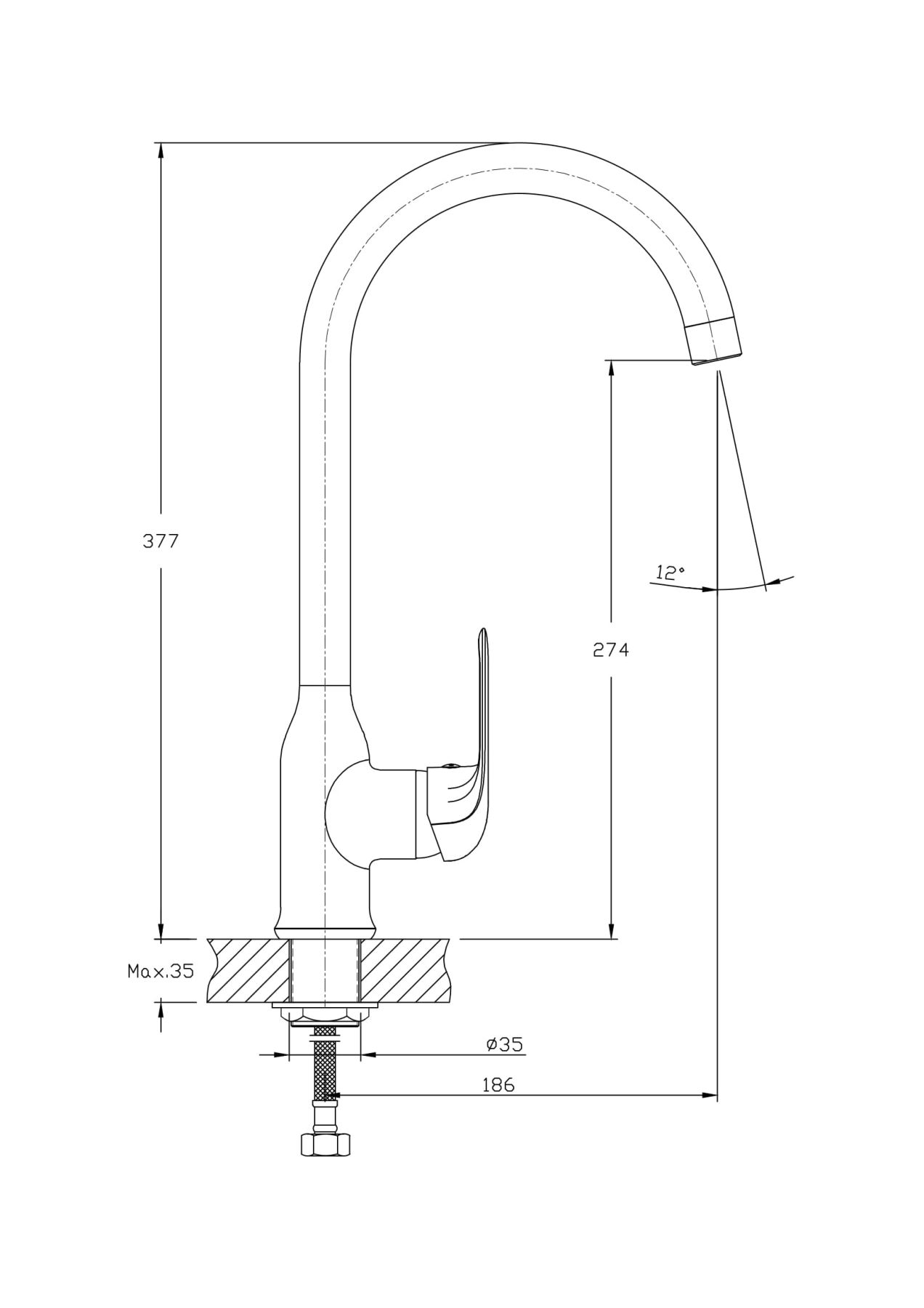 - Высота смесителя:37.7