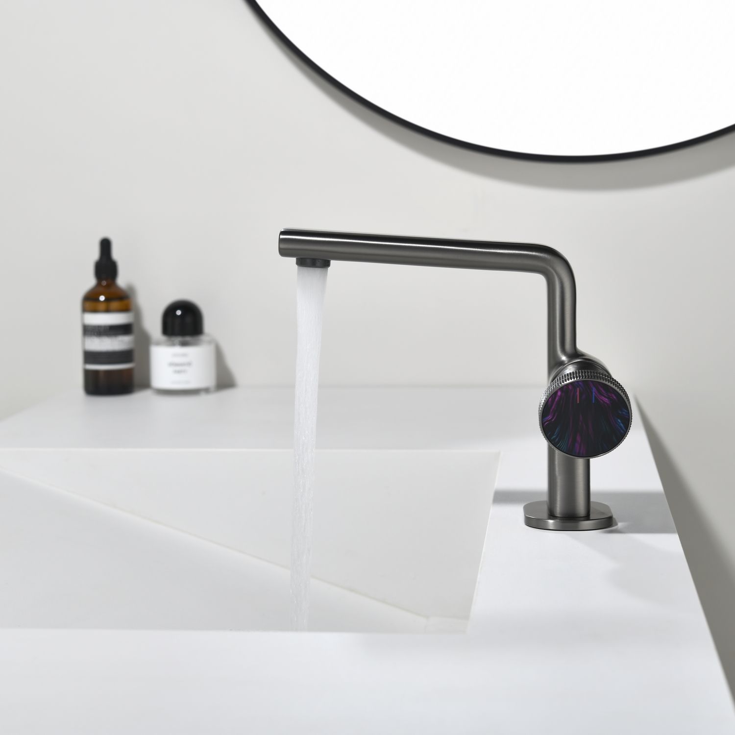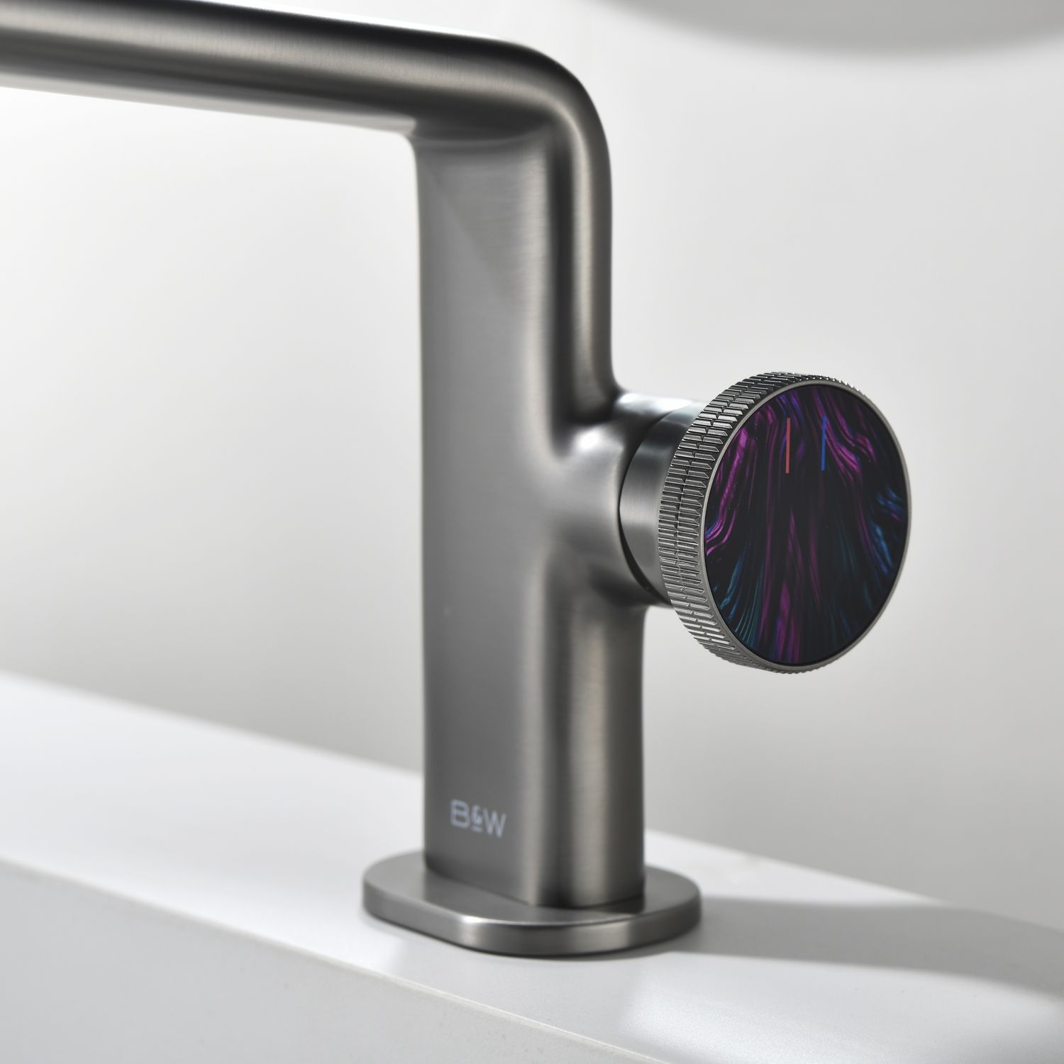Смеситель для раковины датского производителя Black&White в цвете оружейная сталь. Корпус изготовлен из сантехнической латуни марки HPB 53– безопасного для здоровья сплава из олова цинка и меди. На изделии установлен картридж прогрессивной конфигурации, без возможности регулировки давления в полном диапазоне, доступна регулировка температуры для удобства настройки и экономии воды. Для включения используется ручка в форме диска с насечками и ярким цветовым дополнением.В дизайне продукта используются лаконичные прямоугольные формы со скруглением, которые гармонично дополнят многие современные интерьеры ванных комнат.