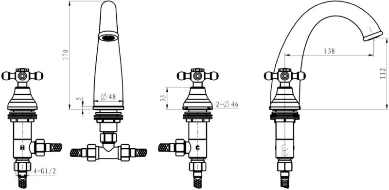 • Высота смесителя:
