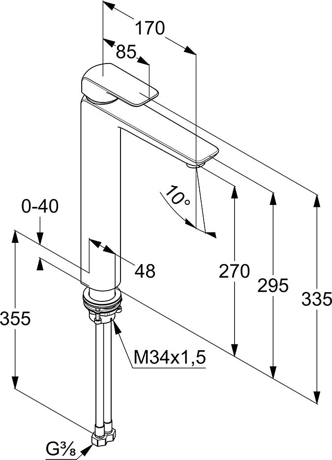 • Высота смесителя: