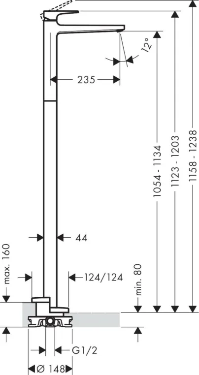 • Высота смесителя: