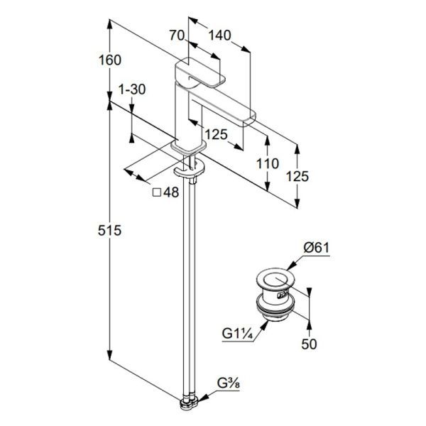 • Высота смесителя: