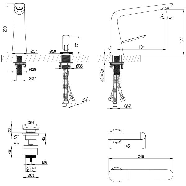 - Отверстия для монтажа:2