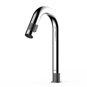 Прогрессивный смеситель немецкого бренда Orans с высоким изливом в цвете хром. Корпус изготовлен из сантехнической латуни – данный сплав безопасен для здоровья и не подвержен коррозии. В смесители используется керамический картридж повышенной пропускной способности установленный в нижнюю часть корпуса, а настройка температурного диапазона  происходит через кольцо с вертикальными насечками. Регулировка давления выведена на отдельный механизм в зоне аэратора с помощью короткой ручки. Данная концепция позволила сократить габаритные размеры изделия и количество контактных элементов для меньшего загрязнения и простоты в уборке.