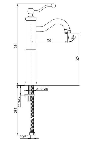 • Нет необходимости низко склоняться над раковиной, чтобы умыться, так как конструкция высокого смесителя предполагает большое функциональное пространство между изливом и раковиной.
