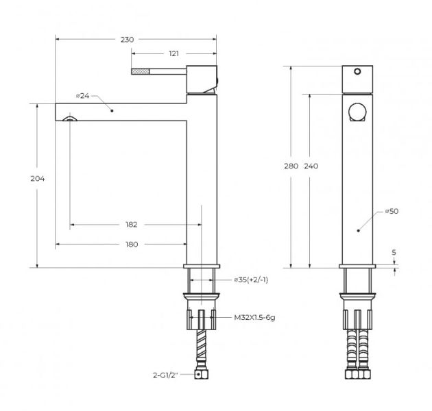 • Высота смесителя: